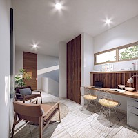 Noroasis contará con estas primeras 7 residencias fuera de privada, pero con opción de una membresía anual para utilizar las amenidades que estarán dentro del desarrollo, además el modelo B Plus se caracteriza por contar con cuatro amplias habitaciones, una de ellas en planta baja para mayor comodidad, así como una cochera para tres vehículos.