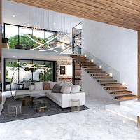 Esta propiedad se caracteriza por tener una doble altura en el área del recibidor y la sala, jardines interiores que armonizan la propiedad, además de una habitación amplia en planta baja, cuenta con un área social muy cómoda en la zona del jardín. En planta alta encontraremos: una sala de TV con terraza y 3 habitaciones con clóset vestidor y baño cada una.