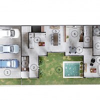 Este modelo se caracteriza por tener una armoniosa distribución en dos niveles con tres amplias habitaciones y un gran family room. Todas las áreas sociales cuentan con una hermosa vista a la piscina.