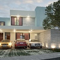 Este modelo se caracteriza por tener una armoniosa distribución en dos niveles con cuatro amplias habitaciones, una de ellas en planta baja además de un family room en el segundo nivel.