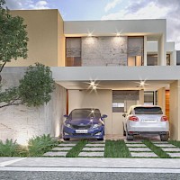 Este modelo se caracteriza por tener una armoniosa distribución en dos niveles con cuatro amplias habitaciones, una de ellas en planta baja además de un family room en el segundo nivel.