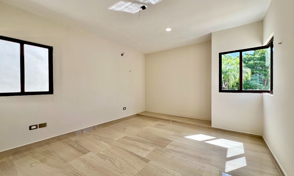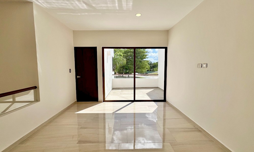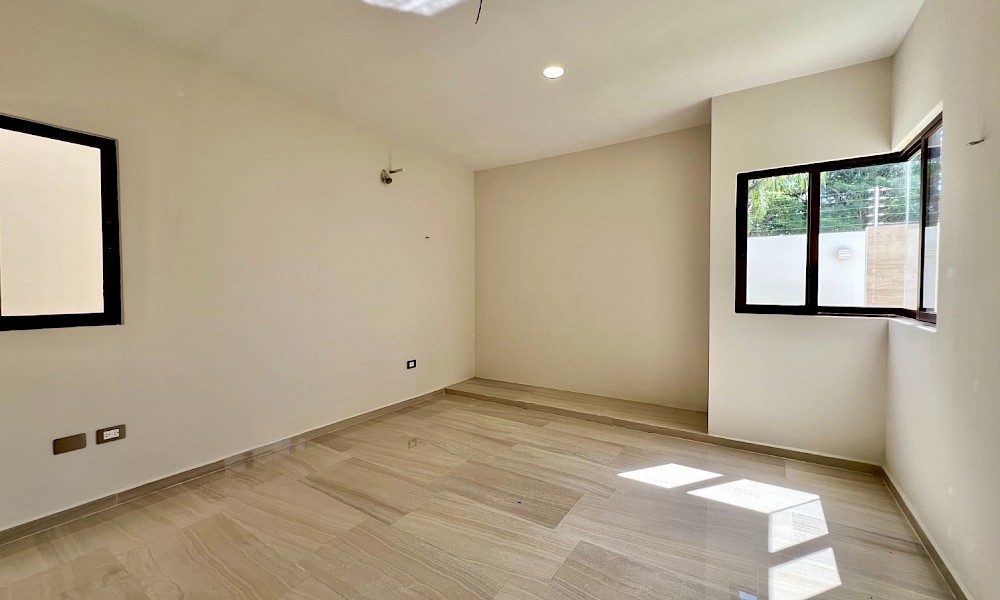Este modelo se caracteriza por tener una armoniosa distribución en dos niveles con cuatro amplias habitaciones, una de ellas en planta baja además de un family room en el segundo nivel.