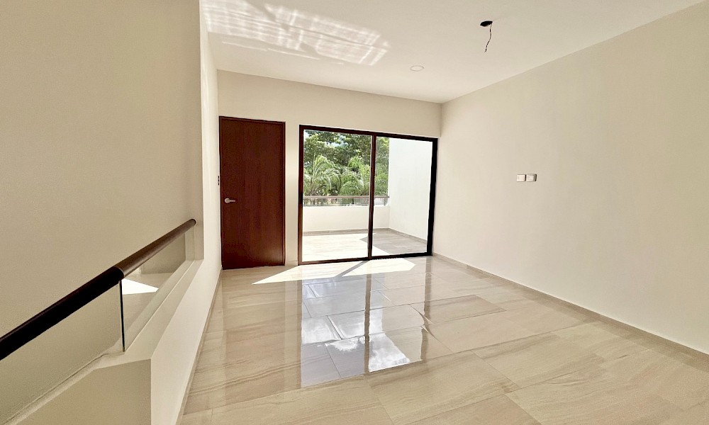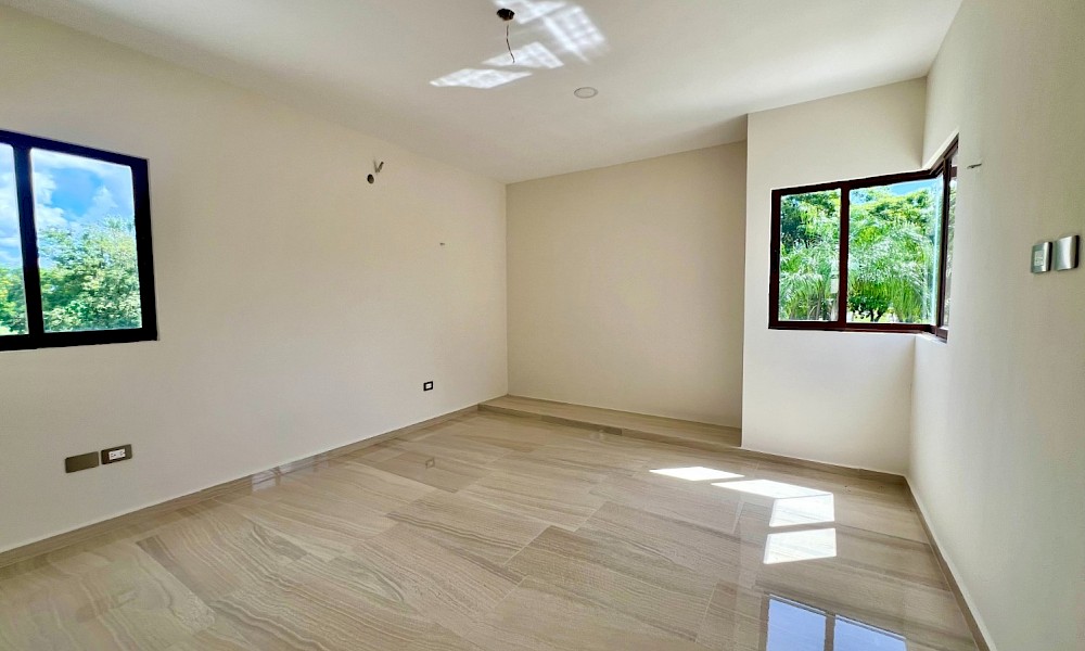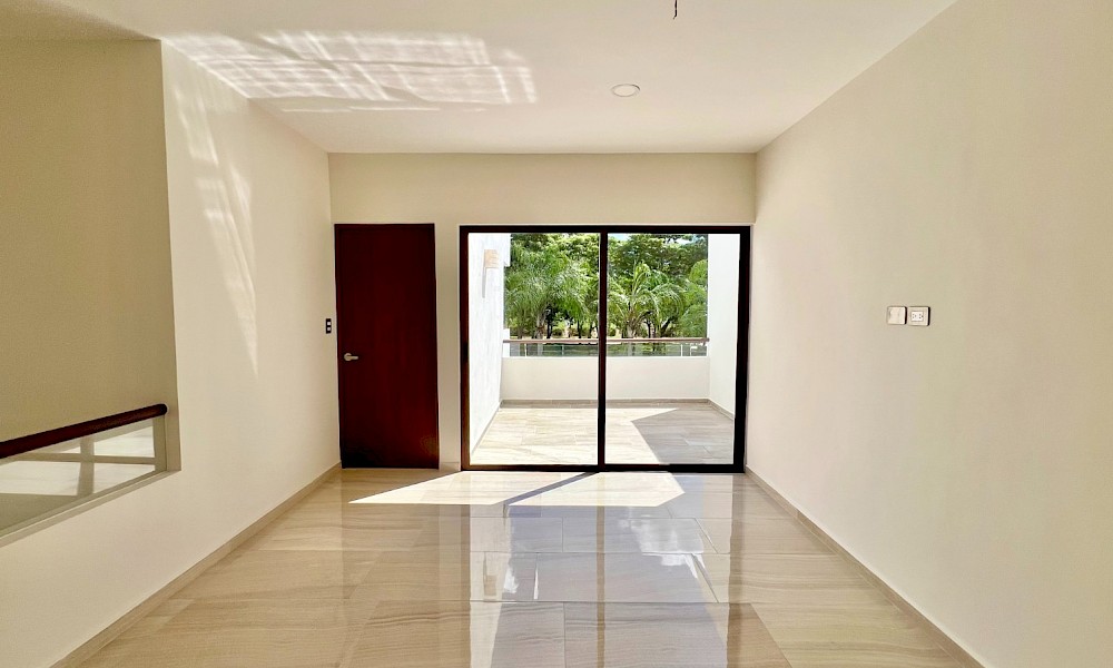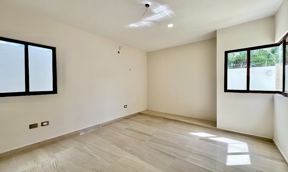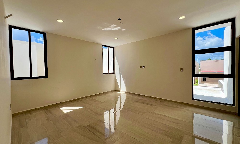 Este modelo se caracteriza por tener una armoniosa distribución en dos niveles con cuatro amplias habitaciones, una de ellas en planta baja además de un family room en el segundo nivel.