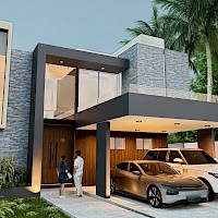 Este modelo se caracteriza por su diseño arquitectónico y contar con dos espacios independientes y adicionales a las tres habitaciones en planta alta.