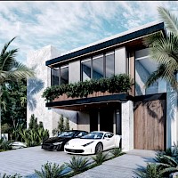 Esta propiedad se caracteriza por tener un diseño moderno y tener cuatro habitaciones, la principal en planta baja para mayor comodidad, además una sala de TV en el segundo nivel.