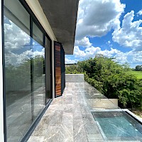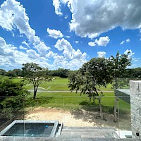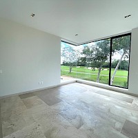 Esta residencia se caracteriza por tener una arquitectura moderna, gozar de espectaculares vistas al campo de Golf y contar con 5 habitaciones, una de ellas en planta baja, además de una sala de TV con baño externo que podría adaptarse como una sexta recámara en caso de ser necesario.