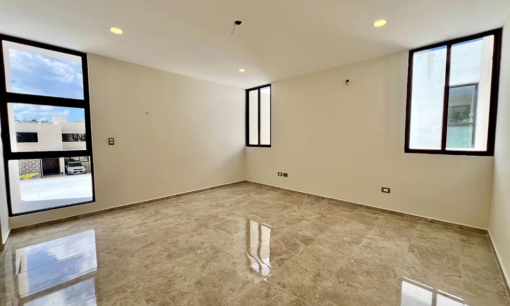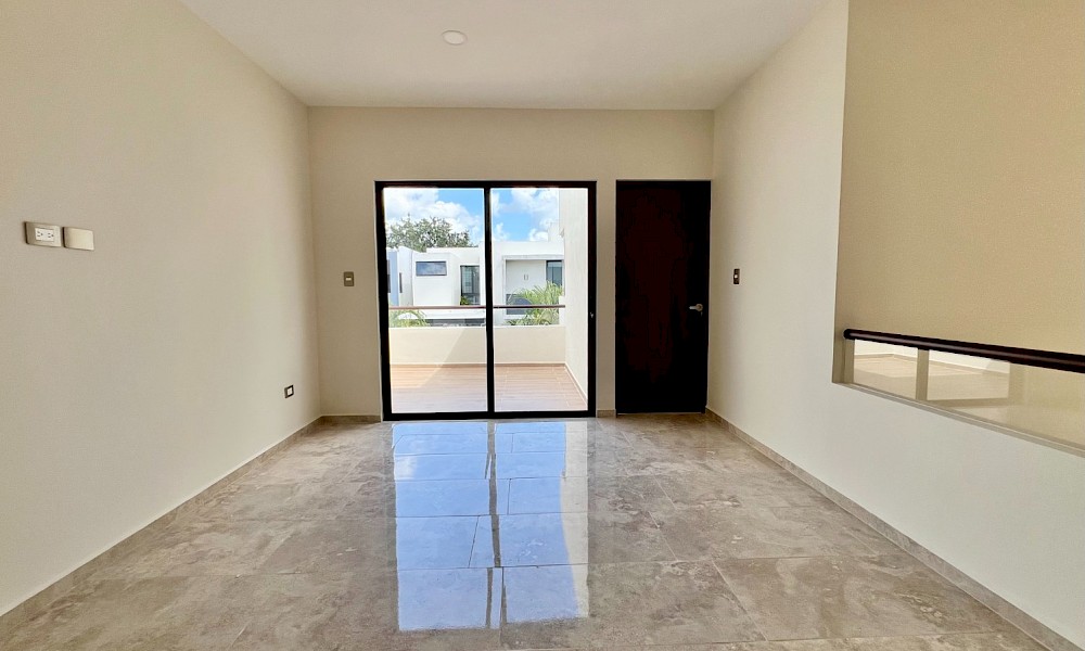 Este modelo se caracteriza por tener una armoniosa distribución en dos niveles con cuatro amplias habitaciones, una de ellas en planta baja además de un family room en el segundo nivel.