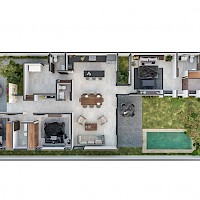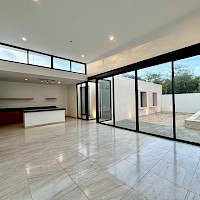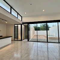 Este modelo se caracteriza por tener una armoniosa distribución en una sola planta, en donde el área social cuenta con vista completa hacia el área social, además de tener tres habitaciones, en donde la principal goza de un excelente tamaño.