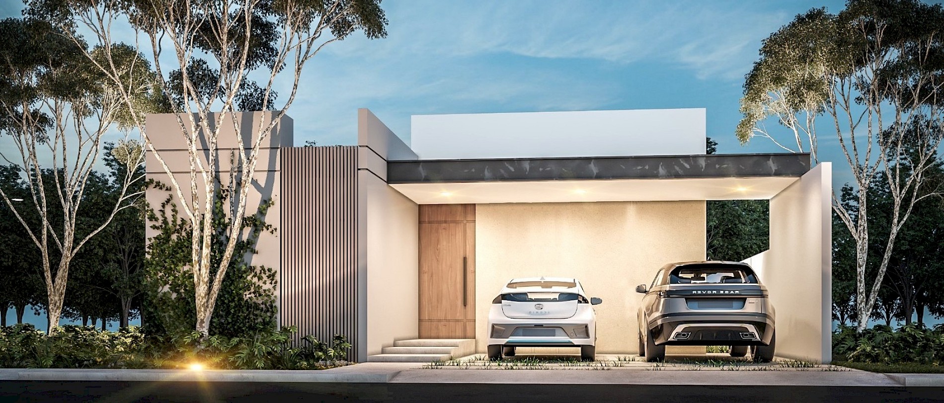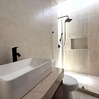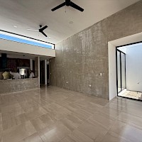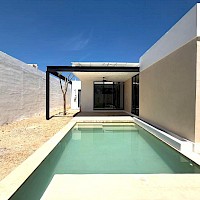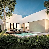 Este modelo se caracteriza por tener una armoniosa distribución en una sola planta, en donde el área social cuenta con vista completa hacia el área social, además de contar con tres habitaciones cada una con su baño.