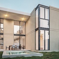 Este modelo se caracteriza por tener una distribución en dos plantas con el área de sala-comedor a doble altura, con vistas hacia el jardín y una habitación secundaria en planta baja, igual con vista hacia el jardín.