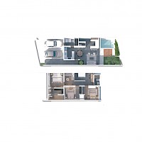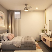 Esta opción se caracteriza por estar distribuida en dos niveles con tres amplias habitaciones en planta alta, además de una sala de tv y un área para home office.