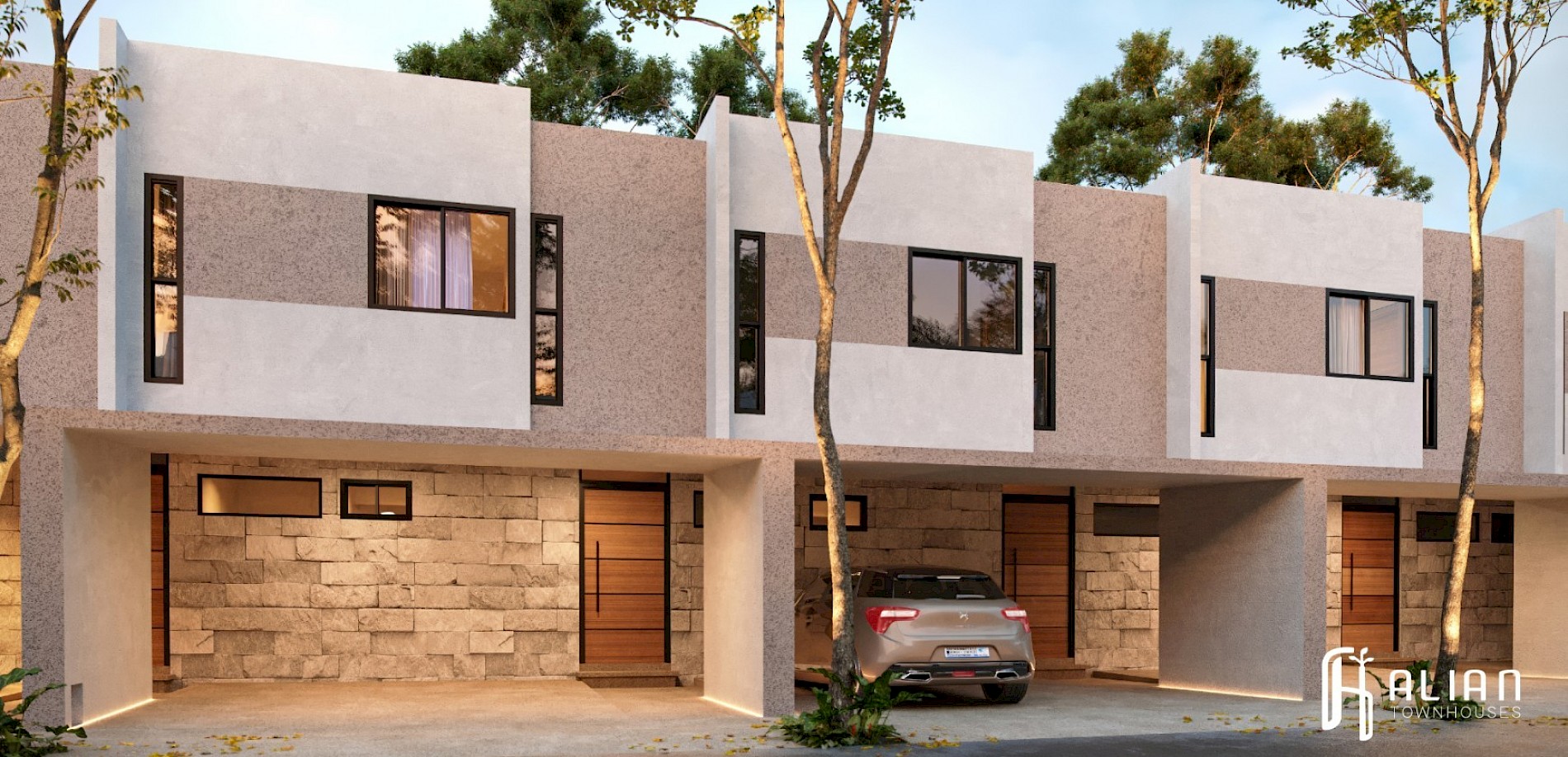 Preventa de townhouses en Alian, ubicada en el fraccionamiento Real Montejo al norte de Mérida. La zona es de un entorno campestre residencial con amplias avenidas y áreas totalmente arboladas y todos los servicios a cortas distancias.