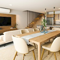 Alian estará conformado de 28 townhouses con amenidades como piscina, área social y seguridad por medio de caseta de vigilancia. Este modelo se caracteriza por contar con dos habitaciones y una sala de TV en planta alta.