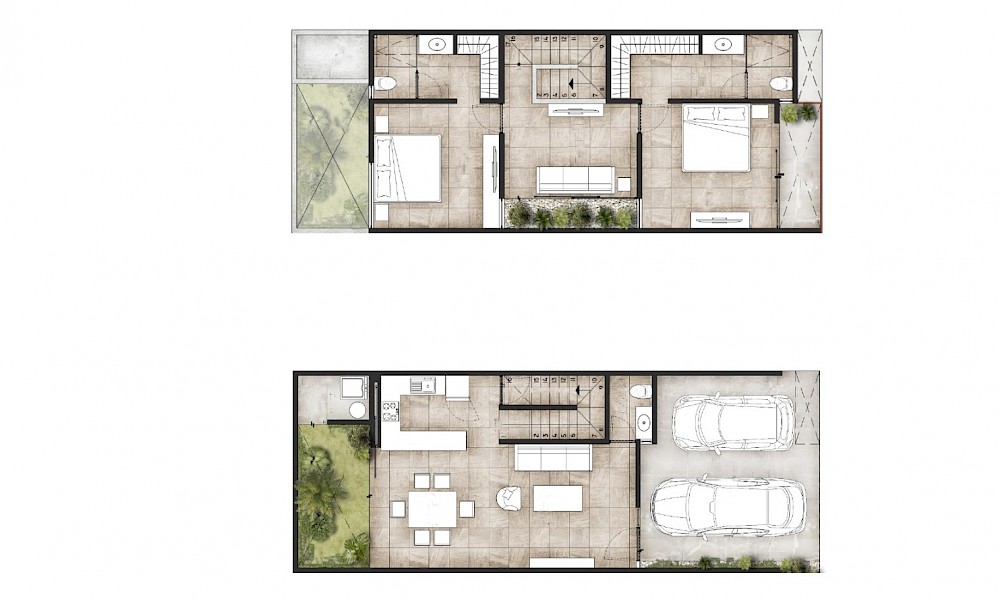 Noroasis contará con townhouses y residencias dentro de régimen en condominio con amenidades, además el modelo básico se caracteriza por contar con dos amplias habitaciones, ambas en planta alta junto con la sala de TV.