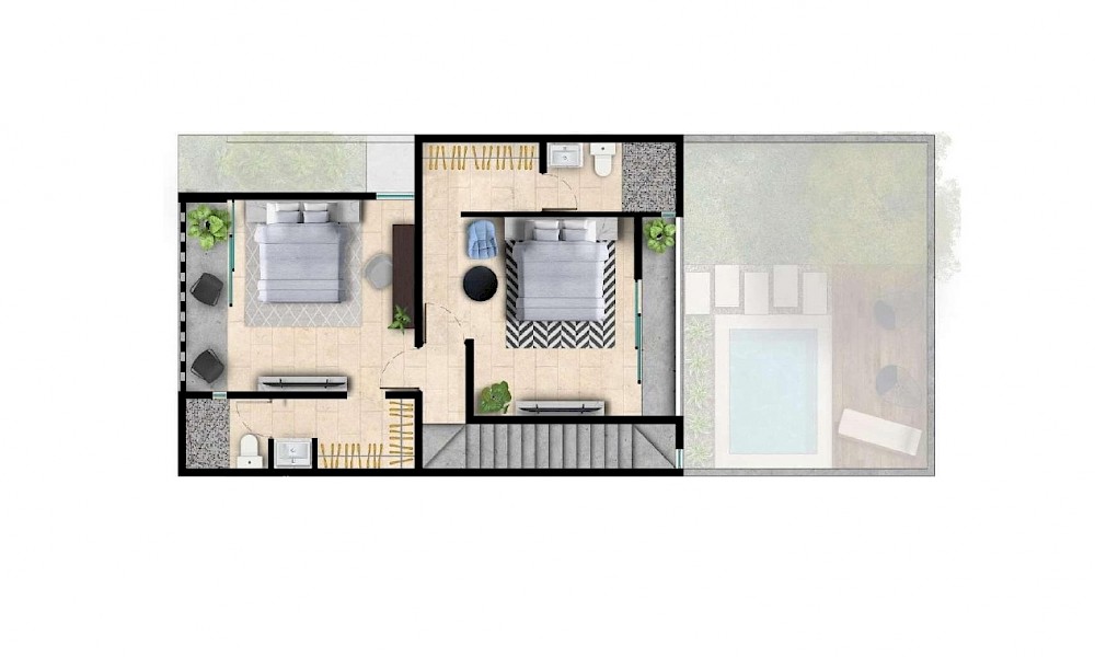Santorini es un conjunto de 10 townhouses que se caracteriza por brindarnos espacios acogedores. Esta propiedad cuenta con dos amplias habitaciones en planta alta.