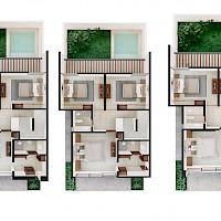 Estas casas se caracterizan por contar con tres habitaciones en el segundo nivel, la recámara principal con baño y área de clóset vestidor.