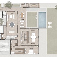 La residencia está rodeada de kilómetros de áreas verdes y amenidades como lagos, playas, una isla con muelle y tirolesa, casa club y demás variedad para pequeños y grandes. El modelo se caracteriza por tener una distribucuón en una sola planta con 3 amplias habitaciones y una amplia terraza techada para el área de piscina.