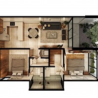 El modelo A se caracteriza por estar conformado por 2 habitaciones con baño propio, así como un medio baño de visitas para mayor comodidad.