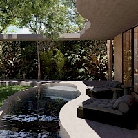 Esta opción se caracteriza por estar distribuida en un nivel con tres amplias habitaciones cada una con baño completo y clóset vestidor, además de tener todas las áreas de servicio en planta alta para mayor comodidad.