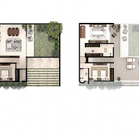 Las villas cuentan con una distribución en dos plantas con tres amplias habitaciones, una de ellas en el primer nivel para mayor comodidad.