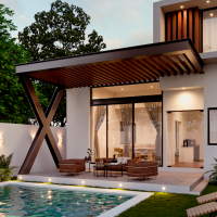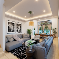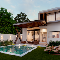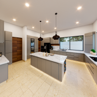 El modelo 331 se caracteriza por tener una distribución en dos plantas con cuatro amplias habitaciones, una de ellas en planta baja para mayor comodidad, además de un estudio y sala de TV en planta alta.