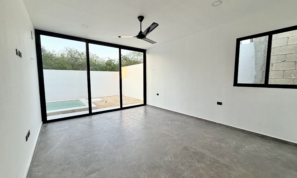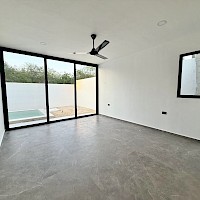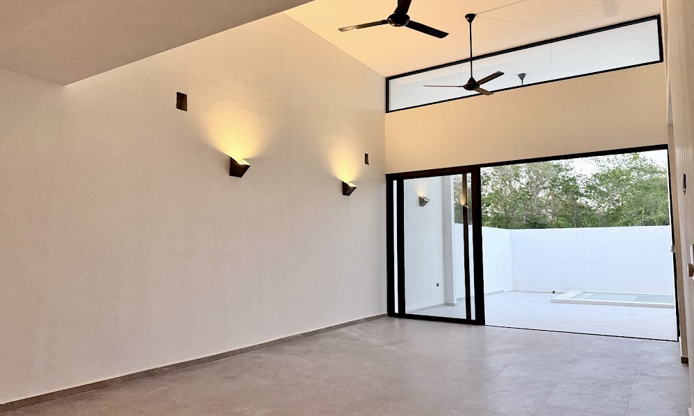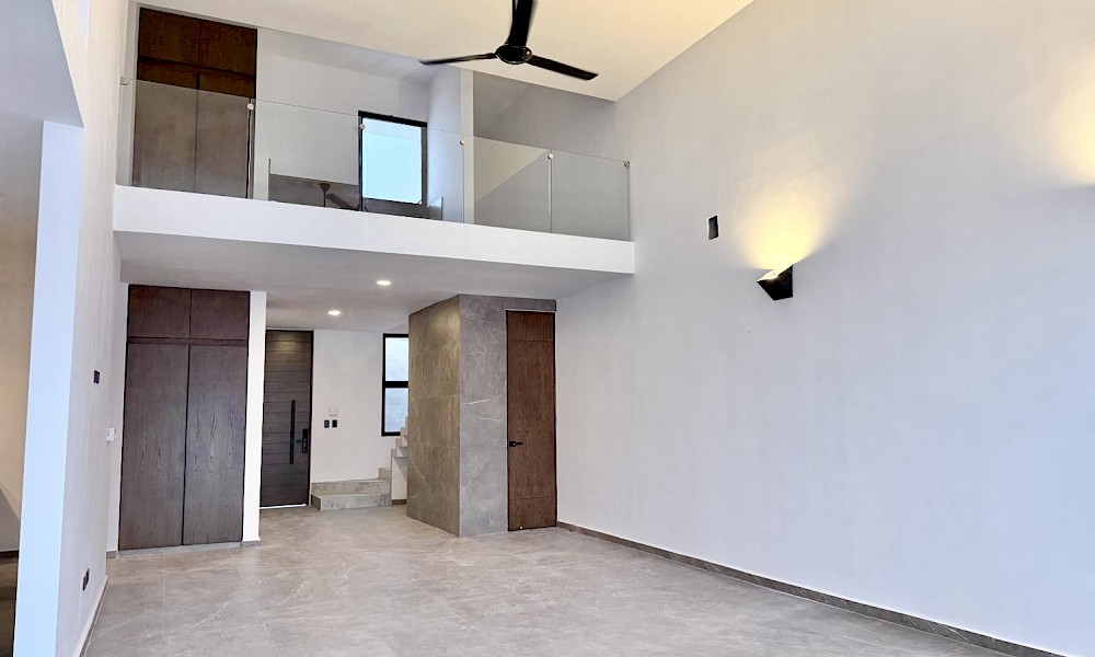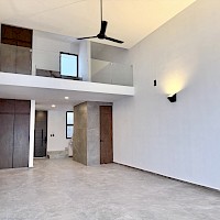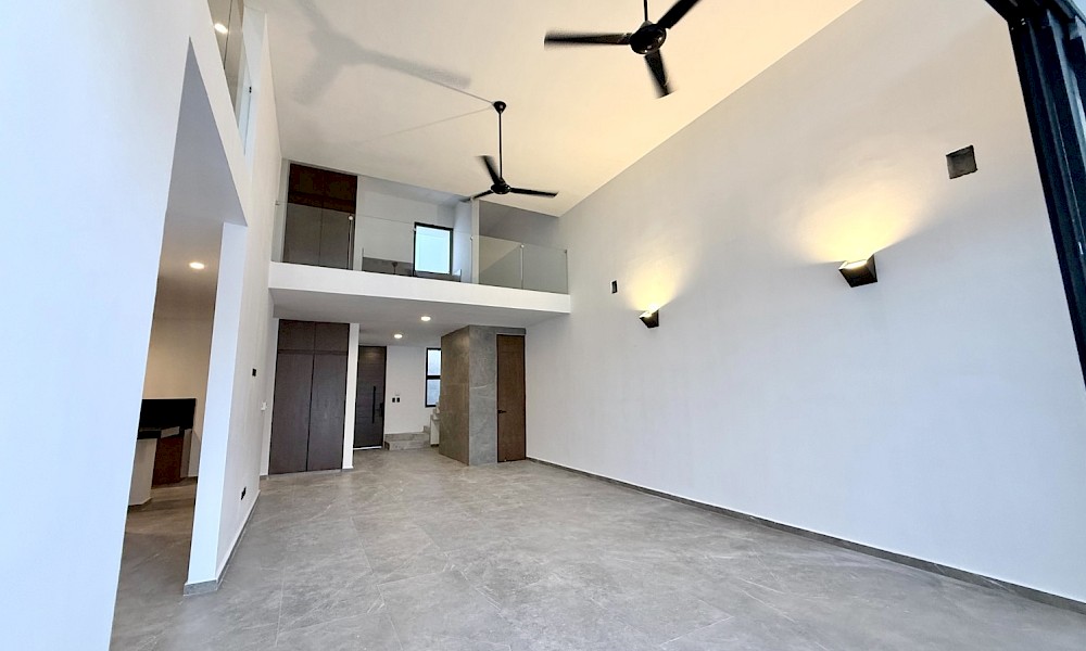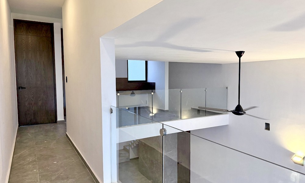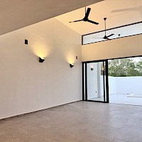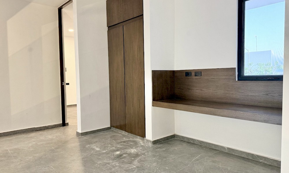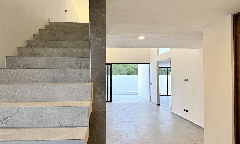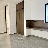 Esta propiedad se caracteriza su diseño moderno, en planta baja encontraremos la habitación principal amplia con vistas hacia el jardín y en planta alta, encontraremos dos habitaciones y un área de sala de TV.