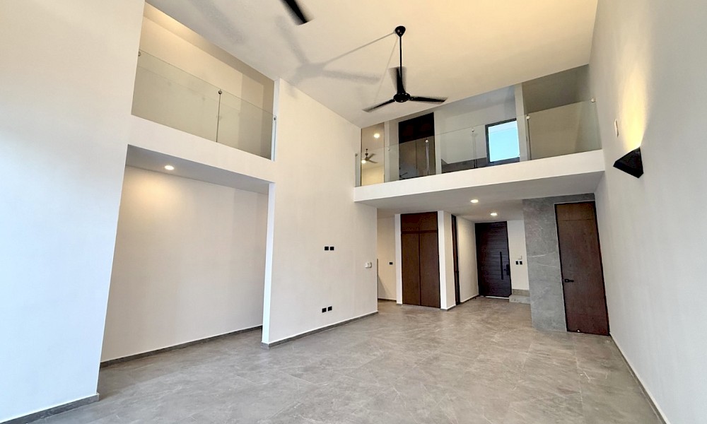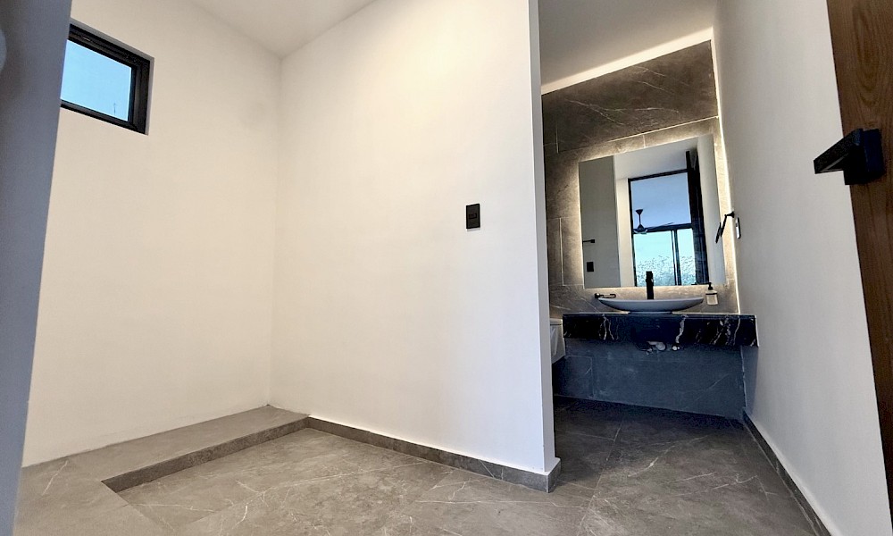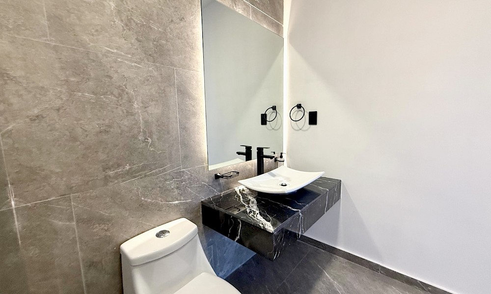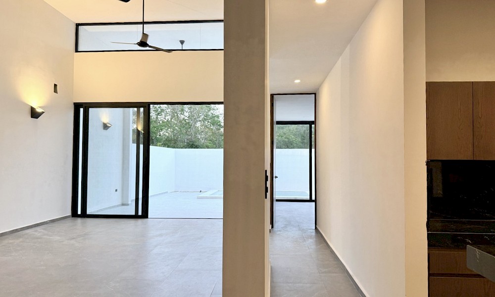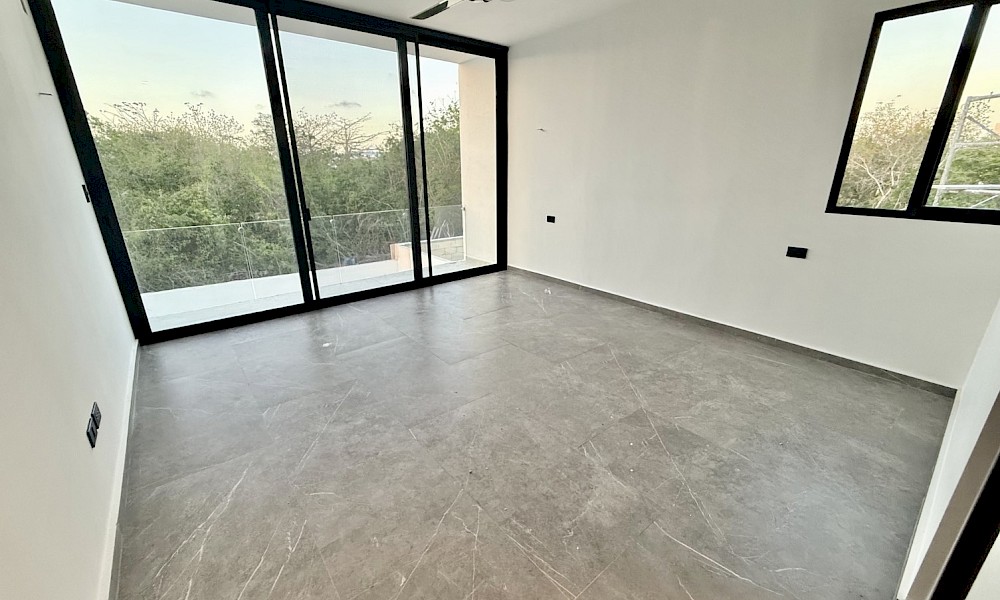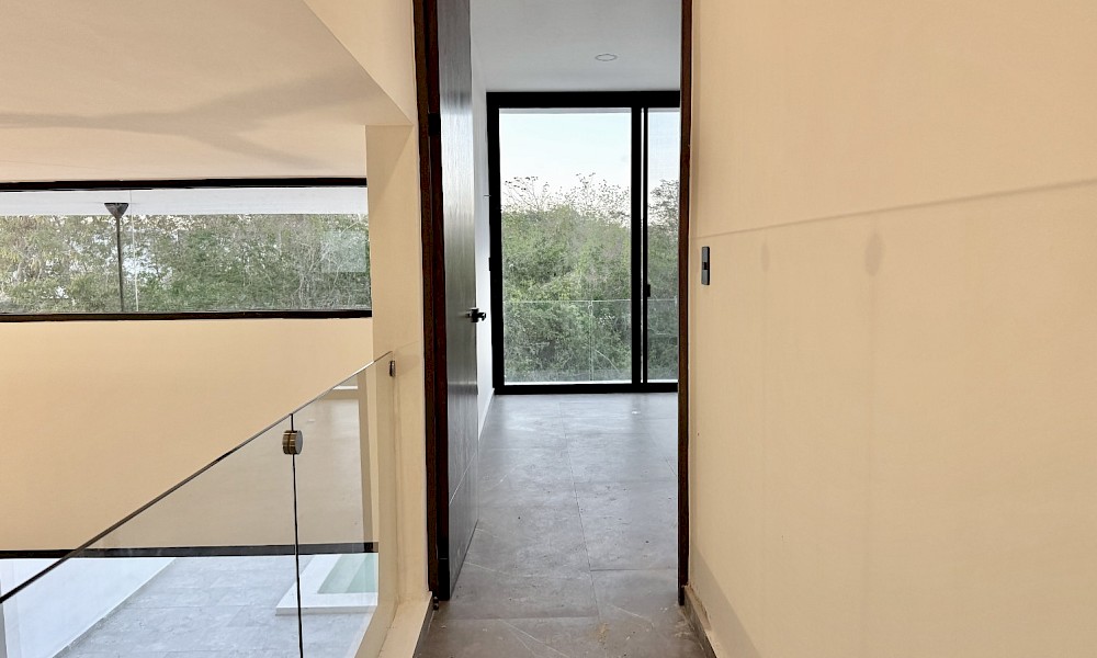 Esta propiedad se caracteriza su diseño moderno, en planta baja encontraremos la habitación principal amplia con vistas hacia el jardín y en planta alta, encontraremos dos habitaciones y un área de sala de TV.