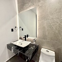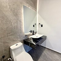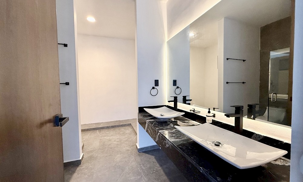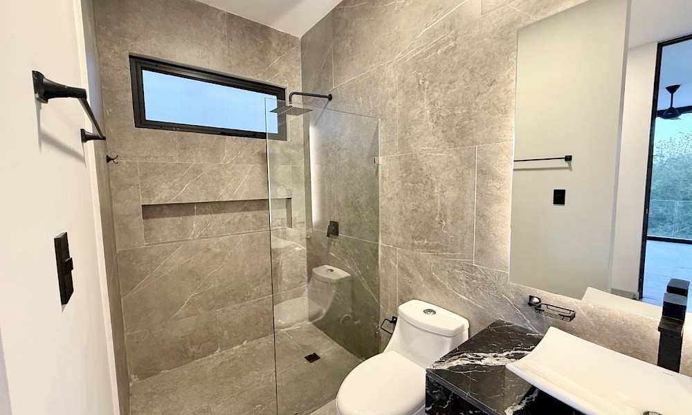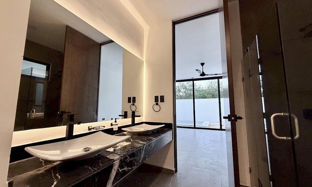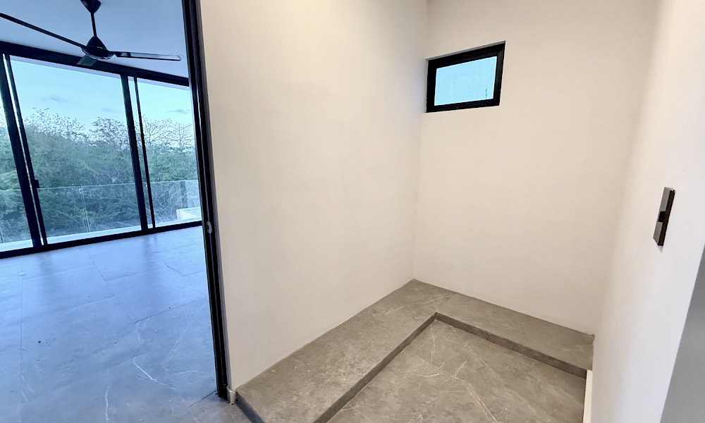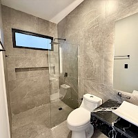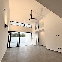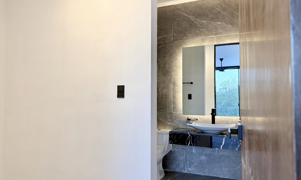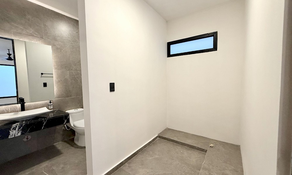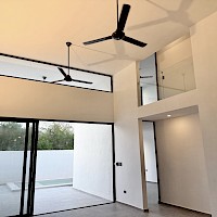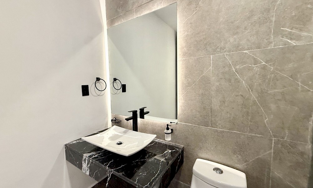Esta propiedad se caracteriza su diseño moderno, en planta baja encontraremos la habitación principal amplia con vistas hacia el jardín y en planta alta, encontraremos dos habitaciones y un área de sala de TV.