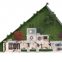 El modelo 336 se caracteriza por contar con una distribución armoniosa en una planta con tres amplias habitaciones y una terraza techada.