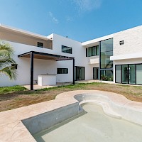 El modelo 16 se caracteriza por contar con cuatro habitaciones, la principal con jacuzzi, terraza y un cuarto independiente que se puede usar como gimnasio o biblioteca. La propiedad cuenta con una amplia piscina privada, así como una general que es parte de las variadas amenidades de la privada.