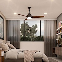 Esta propiedad se caracteriza por contar tener una habitación en planta baja y la sala-comedor a doble altura brindando así, una sensación de mayor amplitud.