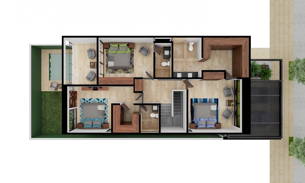 Esta opción está conformada por cuatro habitaciones, una de ellas situada en planta baja.