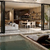 Esta opción se caracteriza por estar distribuida en dos niveles con tres amplias habitaciones en planta alta, cada una con área de clóset vestidor.