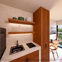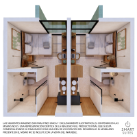 El desarrollo estará conformado de 25 unidades totales distribuidos. El modelo Suite S1 se caracteriza por ser una sola propiedad dividida en dos unidades complementamente independientes, cada una con su acceso, baño y cocina. Se entregan completamente amueblados.