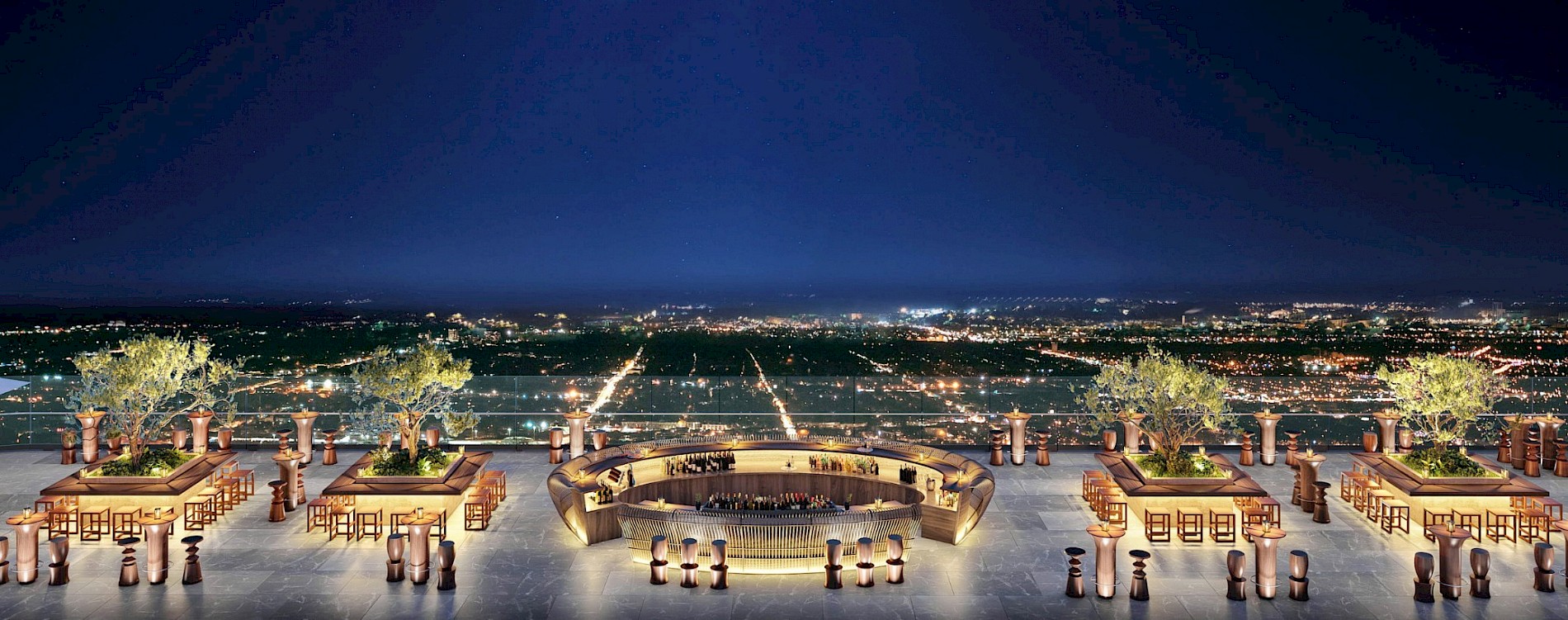 The Sky estará conformado de 36 niveles para oficinas, corporativos, locales comerciales, restaurantes y consultorios médicos, todos rodeados de variedad de amenidades y servicios en un solo lugar. El rooftop restaurant es la característica más importante, al tener las mejores vistas de toda la ciudad, ya que se encuentra a 160m de altura.