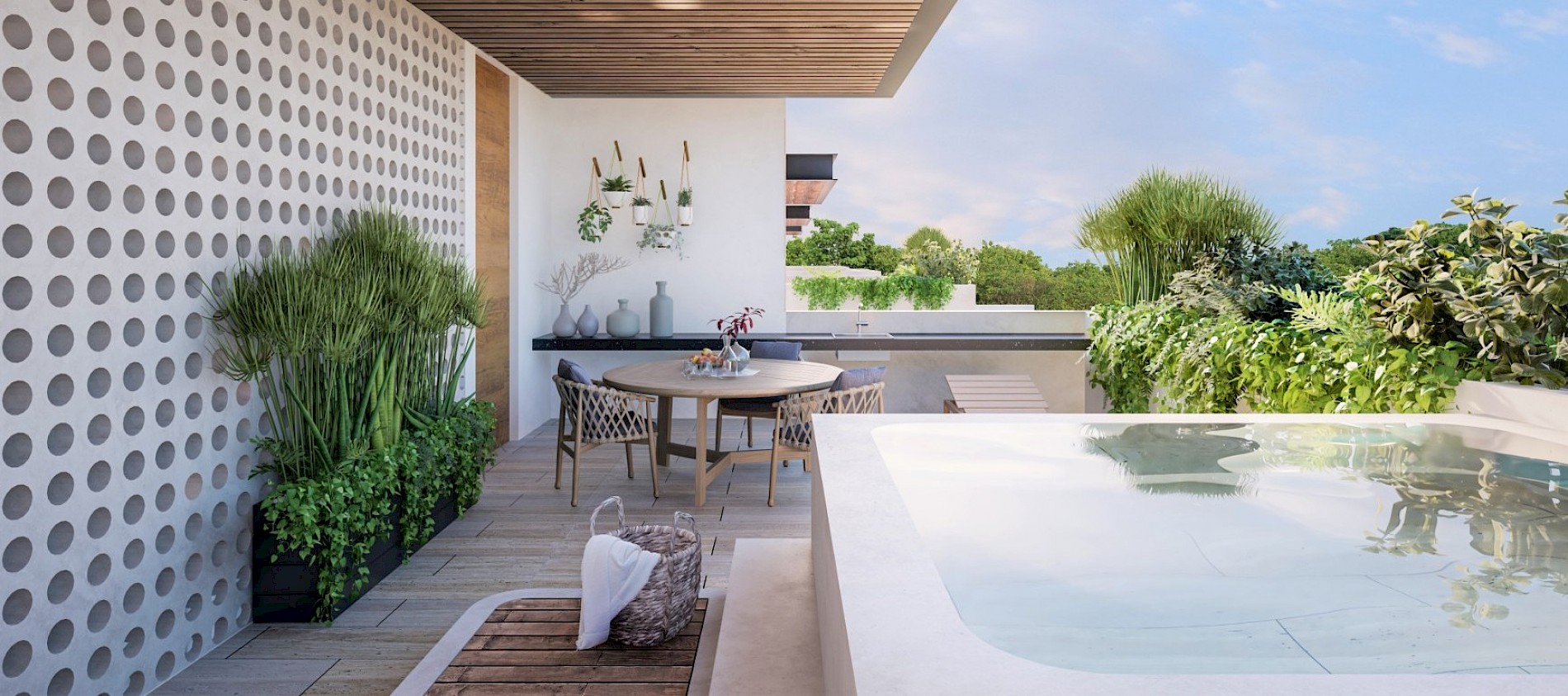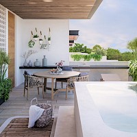 El modelo B, se caracteriza por contar con un rooftop con jacuzzi, con vista a las áreas verdes y amenidades.