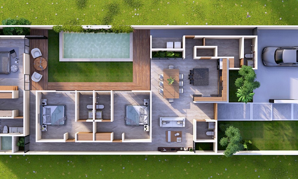 Esta propiedad se caracteriza por su diseño arquitectónico moderno, en donde la doble altura del área de la sala nos brindará mayor iluminación y ventilación, además de contar con un jacuzzi en la recámara principal.