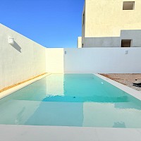 Esta residencia se caracteriza por tener una amplia habitación en planta baja, y dos habitaciones más un family room en planta alta.