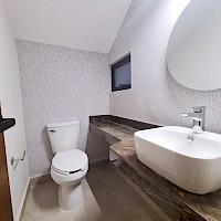 La propiedad cuenta con tres amplias habitaciones, una de ellas en planta baja para mayor comodidad con un modelo muy original y único distribuyendo armónicamente todos los espacios en dos niveles.