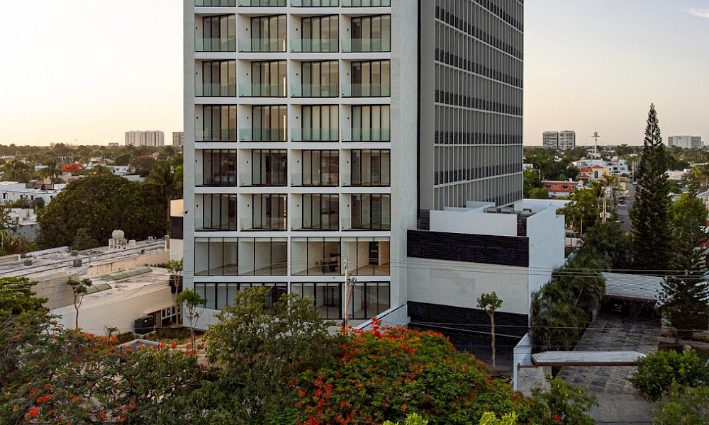 Departamento en venta en Nía Tower, en el norte de la ciudad de Mérida a escasos minutos de plazas comerciales como La Isla, Harbor, City Center y variedad de áreas de entretenimiento. Se encuentra sobre la avenida Cámara de Comercio dentro de periférico en el corazón del norte de la ciudad. El desarrollo contará con seguridad por medio de caseta de vigilancia las 24 horas del día.