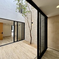 Casa H2 se caracteriza por su armoniosa distribución, en donde el patio central, se vuelve el corazón del proyecto, brindando mayor iluminación y ventilación en toda la casa. Este modelo cuenta con una habitación en planta baja.