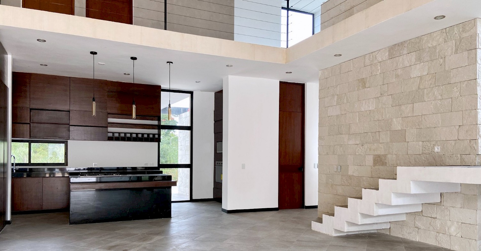 Esta propiedad se caracteriza por tener una excelente distribución en dos plantas con tres amplias habitaciones en planta alta, además de un área de sala-comedor a doble altura y sistema de domótica para automatización.