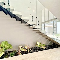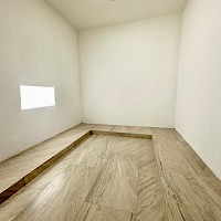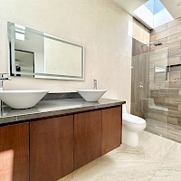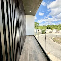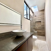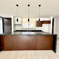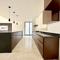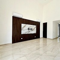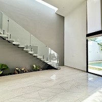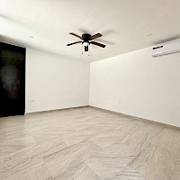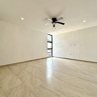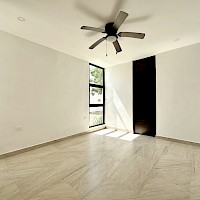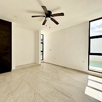 El modelo Tzalam se caracteriza por tener una distribución en dos plantas con el área de sala a doble altura, y la habitación principal en planta baja.