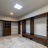 Esta residencia se caracteriza por tener una distribución en dos plantas con cuatro amplias habitaciones, una de ellas en planta baja para mayor comodidad, además de un área de sala a doble altura.