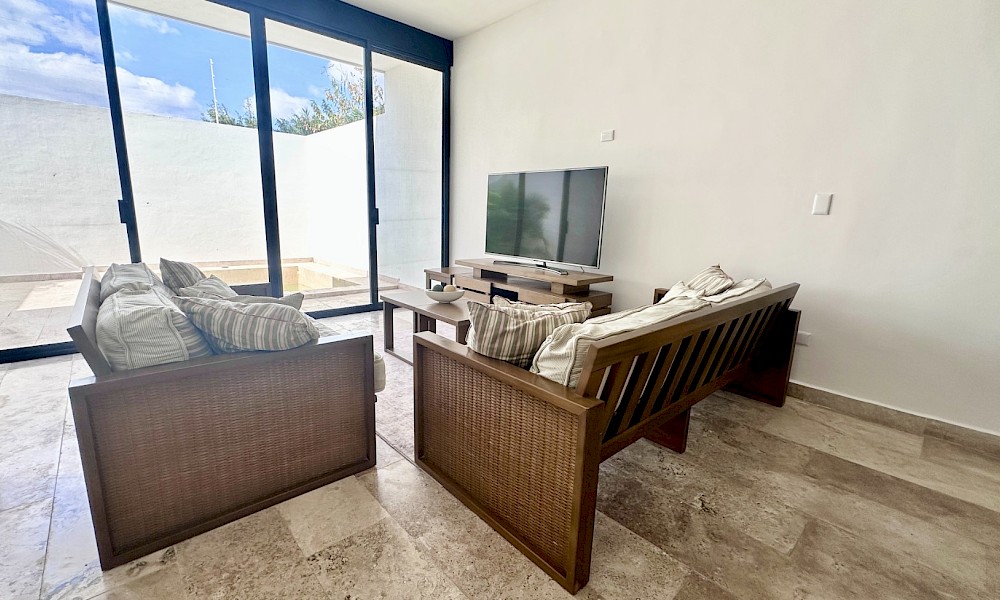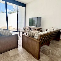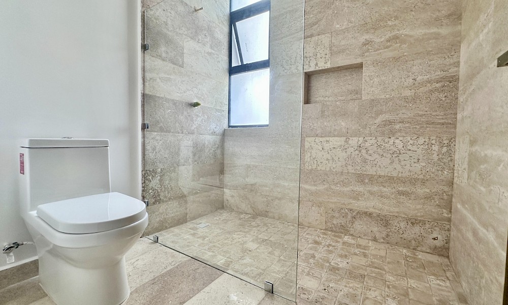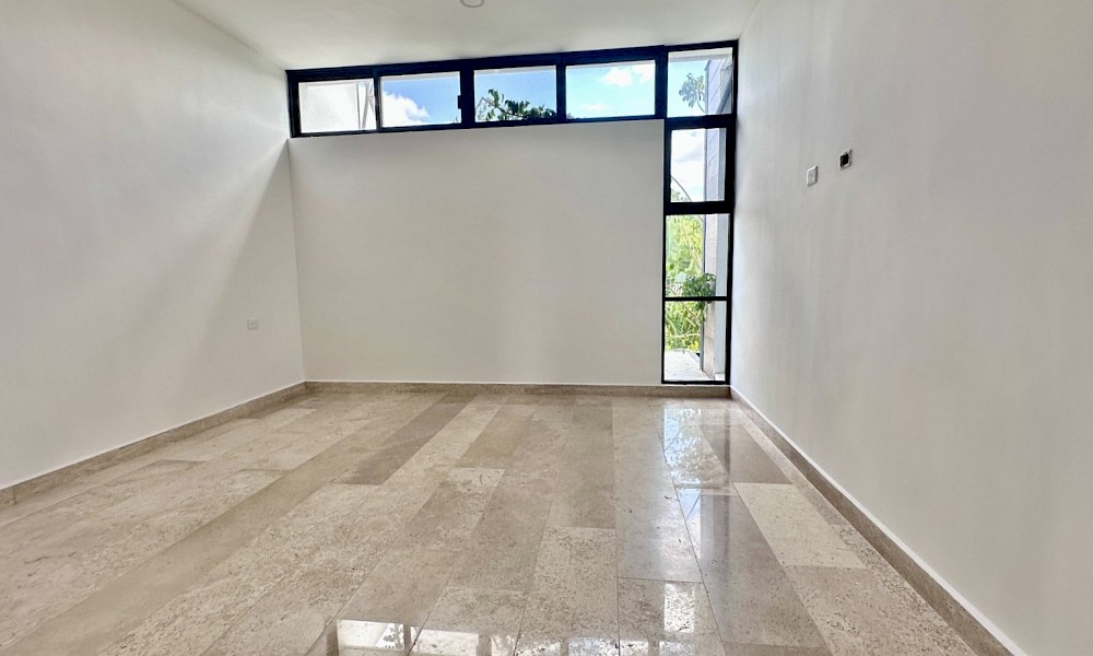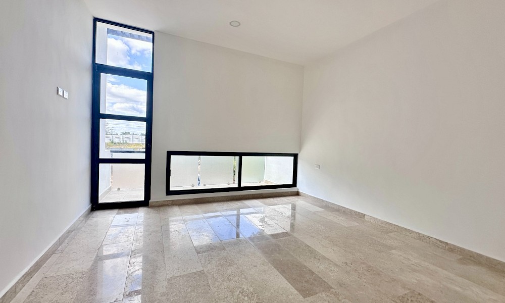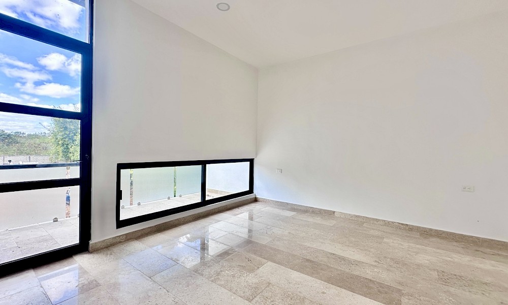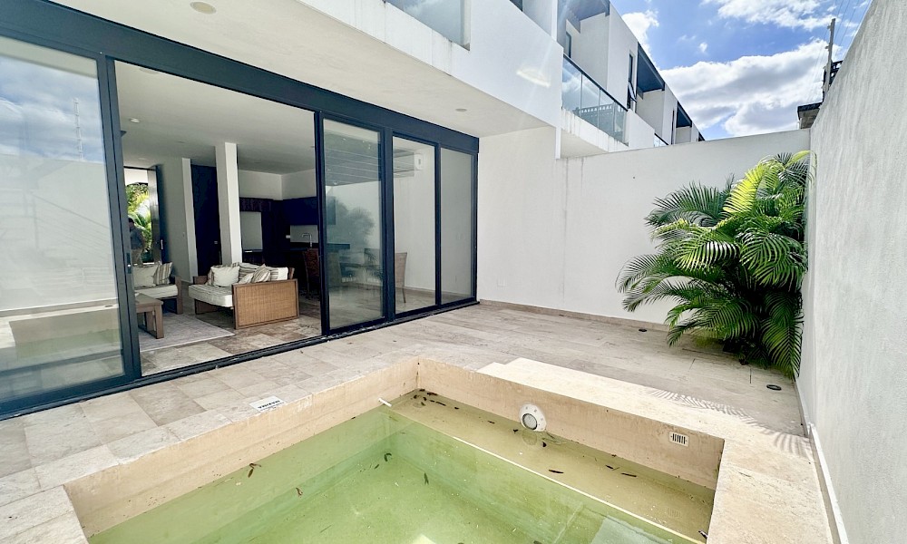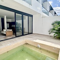 Este modelo se caracteriza por tener con dos habitaciones en planta alta, además de contar con una terraza y piscina privada.