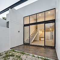 La propiedad se caracteriza por tener tres habitaciones, una de ellas en planta baja para mayor comodidad, además de una sala a doble altura.