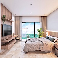 La villa se caracteriza por contar con dos amplias habitaciones con increíbles vistas de las puestas de sol, además de una recámara de visitas o cuarto de servicio en planta baja.