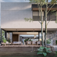 El modelo de A se caracteriza por tener una peculiar distribución en 3 niveles, con todas las habitaciones en la tercera planta con vistas a las áreas verdes con un área social común conformada por una piscina con terraza y por contar únicamente con 5 villas.